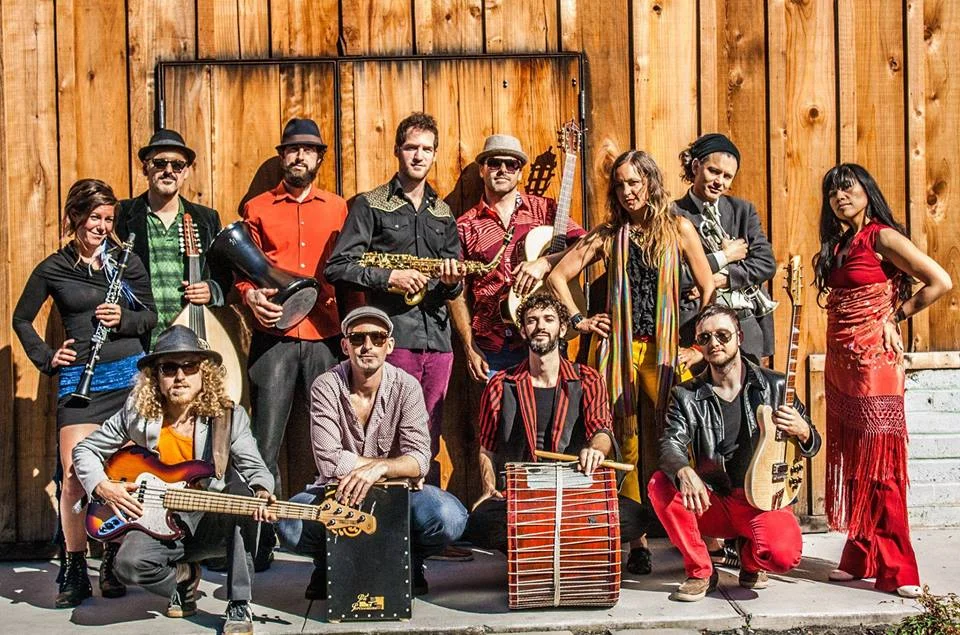 A Bay Area musical collective formed when thirteen members of the hottest Balkan and Latin bands were gravitationally pulled to visit the city of Istanbul. With a mind towards cross-cultural connection and sonic expansion, these die-hards flew 7,000 miles to represent a piece of the the Bay Area music scene. In the process, they have cemented themselves as a supergroup of groove and since their epic beginnings, the band has performed sold-out-show after sold-out-show. They continue to draw their inspiration from the Turkish Maqam, Flamenco, Rumba, Balkan, and Cumbia they are are so deeply rooted in. Come prepared to dance!