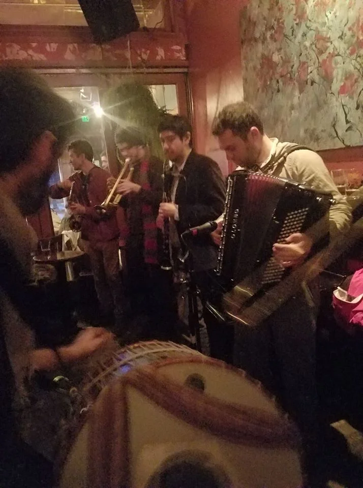 Balkan Sundays this week will have an awesome house band consisting of Gregory Masaki Jenkins on saxophone/clarinet, Peter Bonos on trumpet, Andrew Cohen on accordion/helicon, Sean Tergis on drums and who knows who else might join. We'll be playing your favorite Balkan brass standards and more.