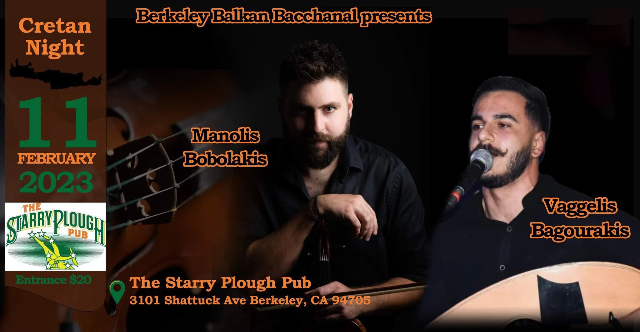 Cretan Night at the Berkeley Balkan Bacchanal with special guests Manolis Bobolakis (violin) Vaggelis Bagourakis (cretan lauto).