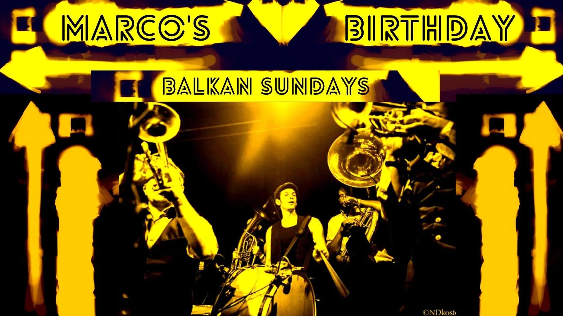 Come and celebrate Marco's birthday at Balkan Sunday - music by by Benjy Rifati (trumpet) - Morgan Nilsen (clarinet) - Joey Friedman (sax) Paul Marini sousaphone - Sen Tergis (dumbek) plus many guests - see you there